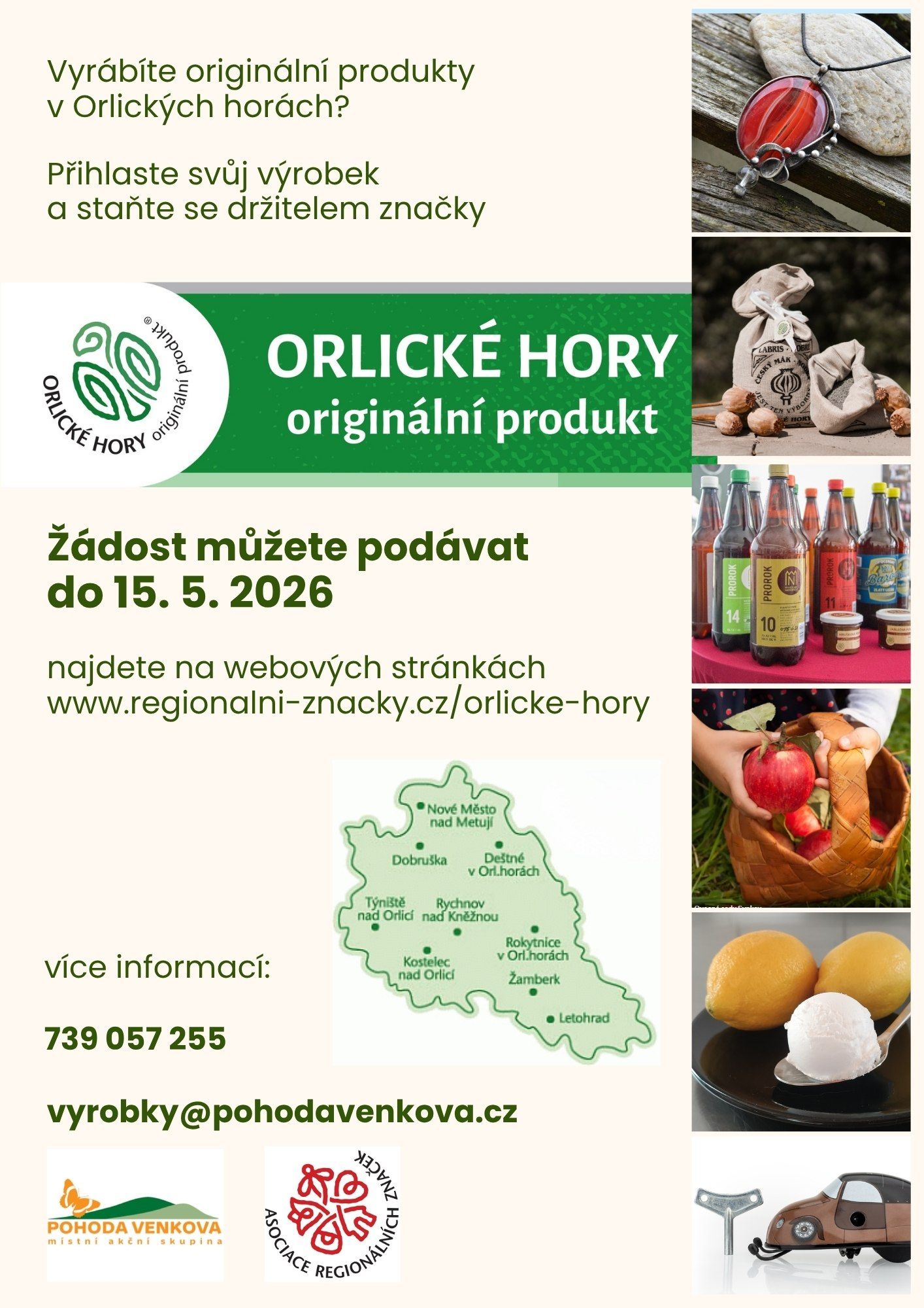 Místní akční skupina Pohoda venkova vyhlašuje výzvu k podávání žádostí o udělení regionální značky „Orlické hory – originální produkt“.